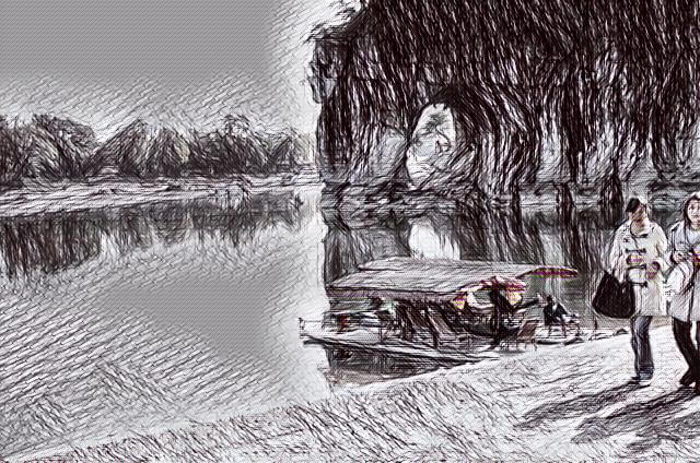 Our room had a marvellous view of the Li River, and the rock formations around it were intriguing. Aditya and my husband spent considerable time photographing the scene from our hotel window. We went out in the evening, returned to the hotel, and had our dinner. There was nothing we fancied eating outside. Most of the restaurants looked threatening. There was a pizzeria, but it looked like the kind of place where you could go green in the face. However, the street outside was interesting. It had different kinds of live music being played on street corners, a taekwondo demonstration by children, and many tiny stalls selling local stuff, from silk scarves to handicrafts to fridge magnets. Within walking distance, we found a water system called the two rivers and four lakes, which had fabulous lights. There was a boat ride on it, but the wails of five-year-old Surya prevented us from stepping into a boat. He was protesting his distaste for boat rides and darkness.