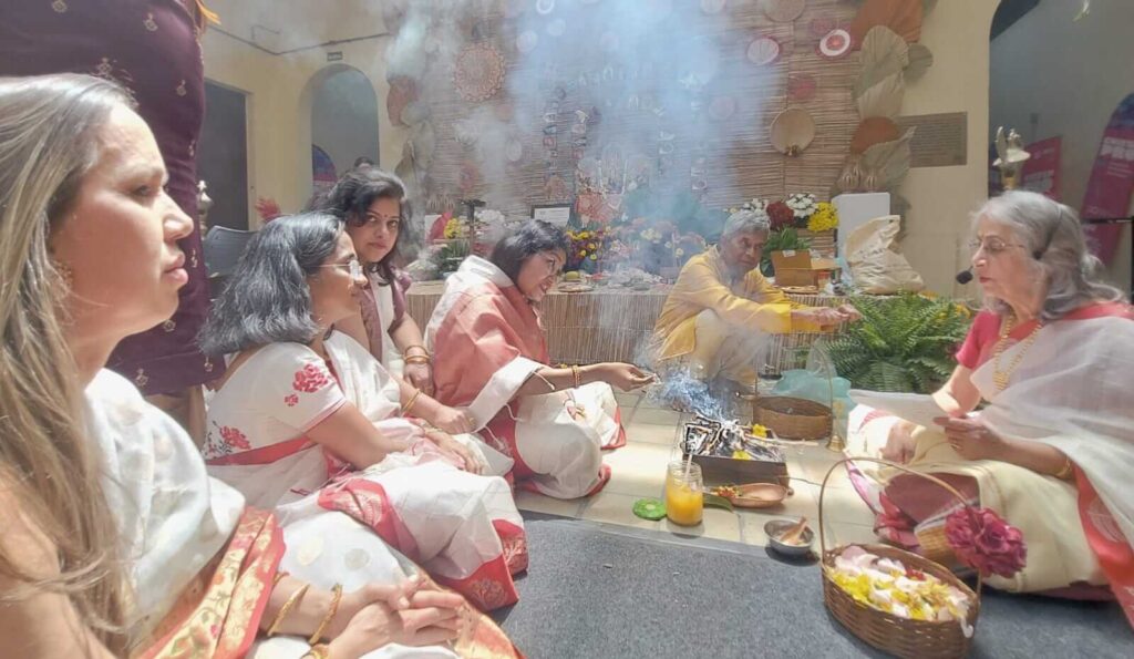 Fifteen years ago, Ratnabali Adhikari (cousin of our Managing Editor Anumita Roy) first chanted the Sanskrit mantras and performed the sacred rituals of Durga Puja in São Paulo, Brazil. She wasn’t just conducting a religious ceremony—she was shattering centuries of tradition. That moment marked a quiet revolution that would ripple across continents, from the bustling pandals of Kolkata, New Delhi and Bangalore to the diaspora communities scattered across the globe.